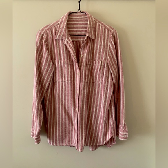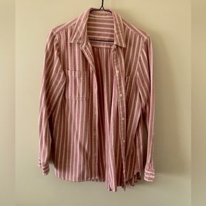 Light weight pink and cream striped button down shirt perfect for summer/the beach. Size medium, brand unknown