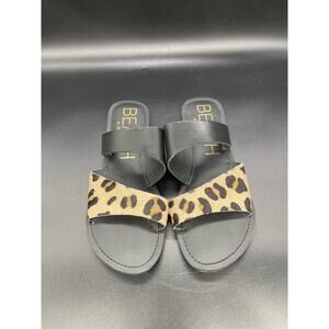 Beach by Matisse Black & Leopard Slip on Flat Sandals Leather Upper Size 8 M