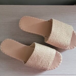 Comfortable and stylish slip-on sandals in beige. Perfect for casual outings, or the beach. In good condition.