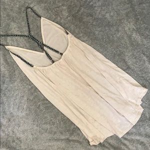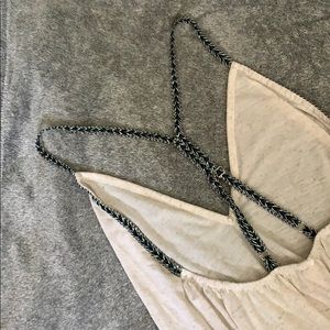 A lightweight heather tshirt material with adjustable straps.