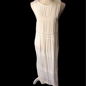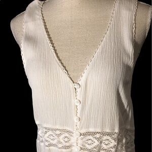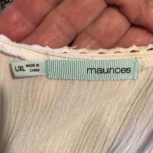 Beach cover up by Maurice , white with lace edging. Button front. Size Large/xtra large .