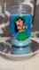 Blue jar featuring Lilo from Lilo & Stitch. Decorated with flowers and a hula design.