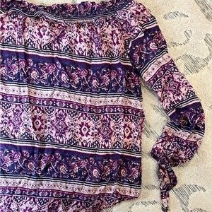 Beach lunch lounge boho top blouse size large small petite purple and pink