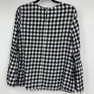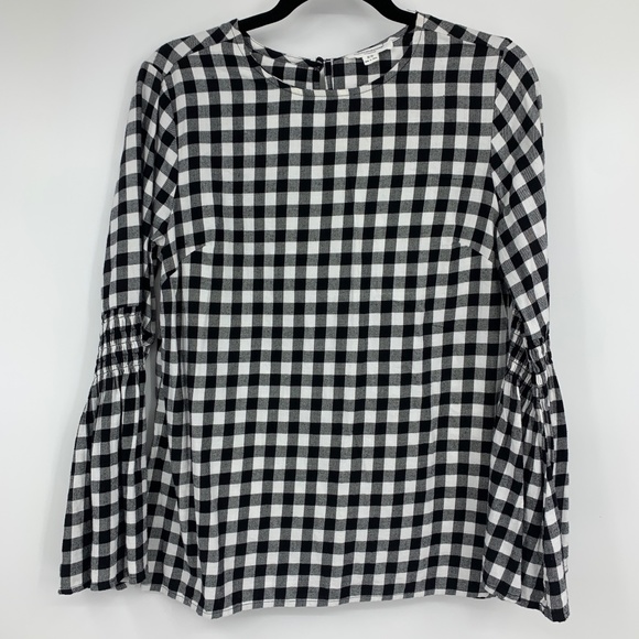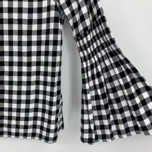 Beach lunch lounge small blouse buffalo check flannel long bell sleeve black top