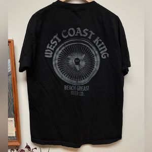 West Coast King. Pistons and Palms. Large. It’s well worn. Pits have slight discoloration.