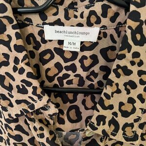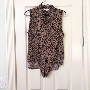 Beach Lunch Lounge Collection Leopard Print Sleeveless Tie Front Button Down Top, Size Medium