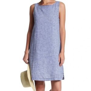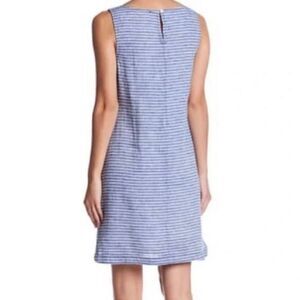 Beach Lunch Lounge Linen Blend Size Small Chambrey Blue Striped Shirt Dress