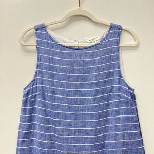 Beach Lunch Lounge Linen Blend Size Small Chambray Blue Striped Shirt Dress