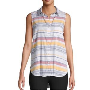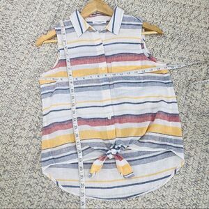 Beach Lunch Lounge striped button up sleeveless top. Excellent condition multicolor stripe. Cute tied in front or left out. See photos for measurements. Size tag is missing measures like a size small