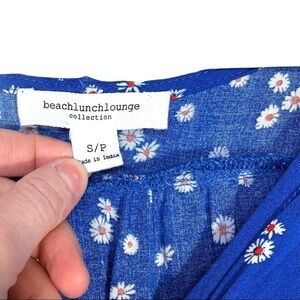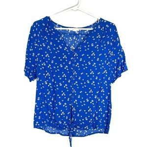 BeachLunchLounge Blue Daisy Floral Front Knot Tie Shirt Size Small