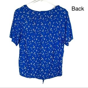 BeachLunchLounge Blue Daisy Floral Front Knot Tie Shirt Size Small