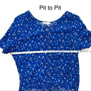 Beachlunchlounge Blue Daisy Floral Front Knot Tie Shirt Size Small