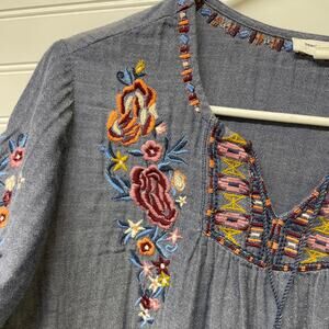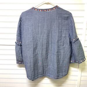 BeachLunchLounge Boho 3/4 Sleeve Embroidered Top VNeck W/Tassels