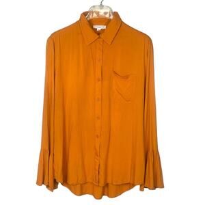 BeachLunchLounge Burnt Orange Blouse Long Sleeve Button Up Top