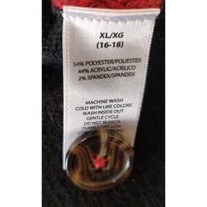 Women's SIZE XL 16-18. 54% Polyester/44% Acrylic/2%Spandex. Machine Wash/Tumble Dry. Made in China.