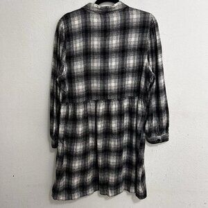 BeachLunchLounge Josepphine Smocked Babydoll Plaid Long Sleeve Dress Cotton XL