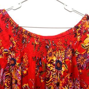 BeachLunchLounge Latoya Bell Sleeve Off Shoulder Red Floral Peasant Top Size L