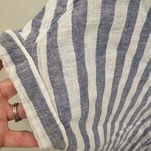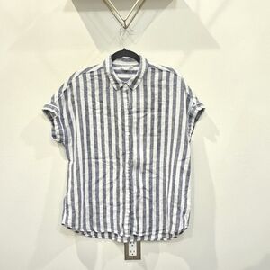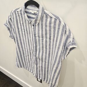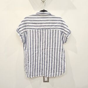 BeachLunchLounge Linen Blue Shea Stripe Short Sleeve Button Front Shirt Medium