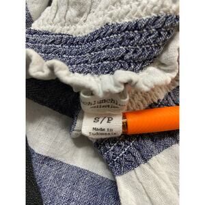 BeachLunchLounge Linen Tee Shirt Womens S Off On Shoulder Smocked Pleat Striped
