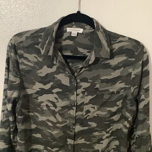 BeachLunchLounge Military Green Gorpcore Camouflage Grunge Button Down Blouse XS