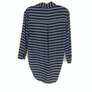Beach Lunch Lounge navy white striped button down tie front high low top.