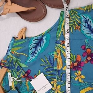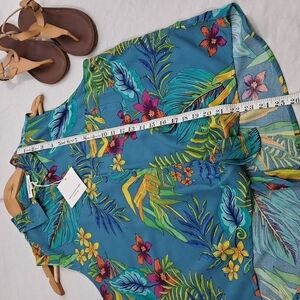 BeachLunchLounge Paradise Teal Sleeveless Button-Up | Tropical Print | M NWT