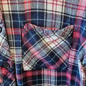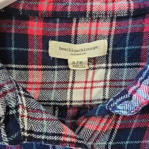 BeachLunchLounge Plaid Button Up Flannel Blue Pink Size Small