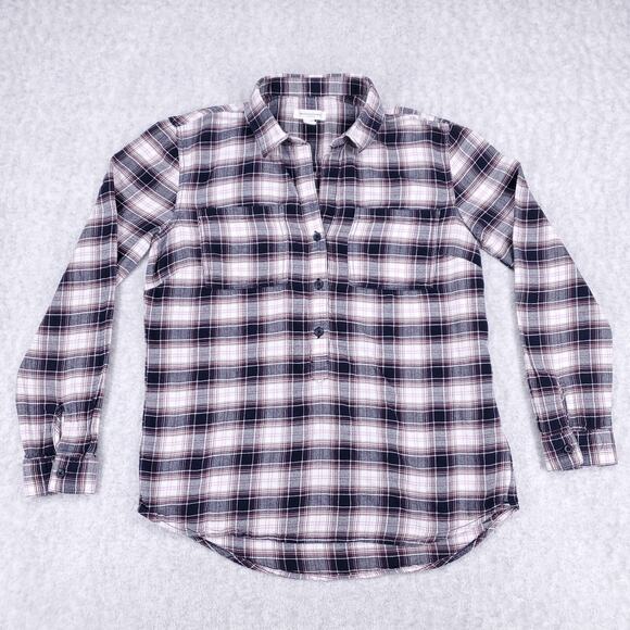 BeachLunchLounge Plaid 3/4 Button Up Collared Pullover Womens XS