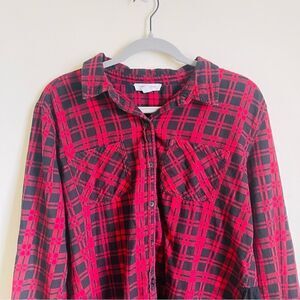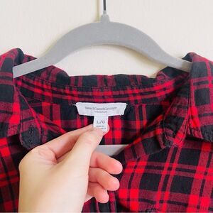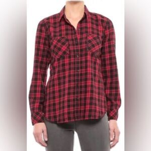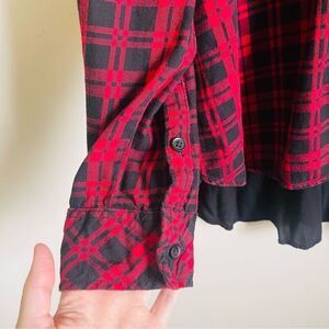 BeachLunchLounge Red + Black Plaid Button Down Top Large