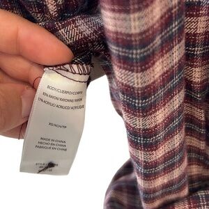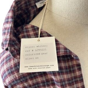 BeachLunchLounge Red Pear Whitney Button Down Plaid Long Sleeve Top Size Small