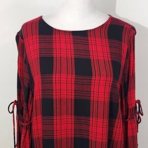 Beach Lunch Lounge red and black plaid mini dress with statement sleeves. Make me an offer!