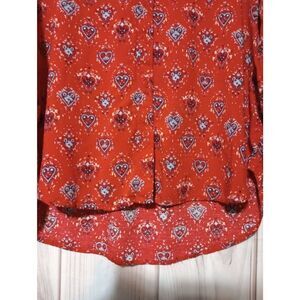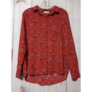 BeachLunchLounge Shirt Ladies Large Red Button Front Long Sleeve Heart