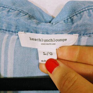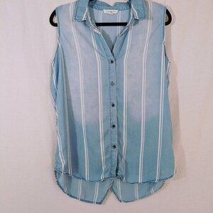 BeachLunchLounge Sleeveless Light Blue & White Stripe Button Down Top Size L