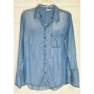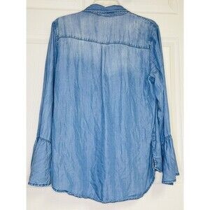 BeachLunchLounge Small S Chambray Lyocell Bell Sleeve Button Down Shirt Top Boho