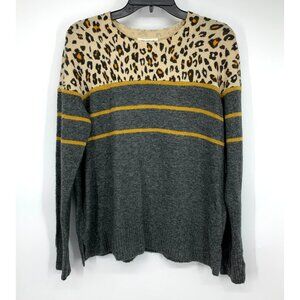 BeachLunchLounge Sweater Womens Size Large Gray Leopard Stripe Paola Pullover. Great pre-owned condition.