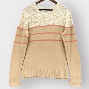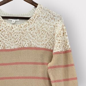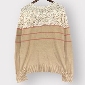 BeachLunchLounge Sweater Women XL Beige Animal Print Knit Long Sleeve E18