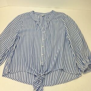 BeachLunchLounge Tanji White Blue Striped Tie Front Top Medium Lyocell Blend