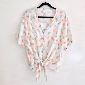 Your new vacation shirt! Printed pineapple viscose top with tie front detail by beachlunchlounge. Size M, new with tags!