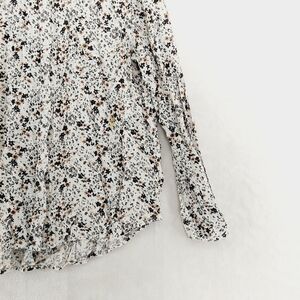 BeachLunchLounge Viscose White Black Floral Button Down Long Sleeve Shirt P3554