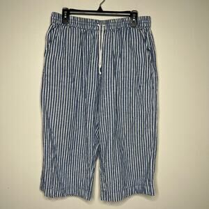 BeachLunchLounge Wide Leg Capri Blue White Striped Linen Blend Size L Drawstring