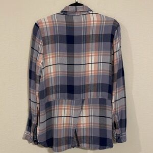 BeachLunchLounge Purple & Pink Plaid Flannel Fly Away Back Button Front Top