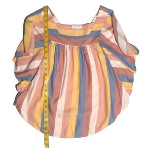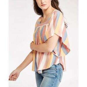 Pre-owned women’s BeachLunchLounge Zoey Happy Stripe boho top with a square neck and flutter sleeves. Great for spring and summer.