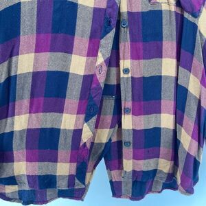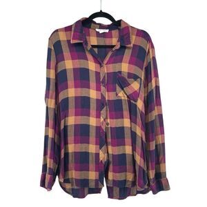 BeachLunchLounge Women’s Jewel Tone Purple Plaid Button Front Top Large