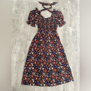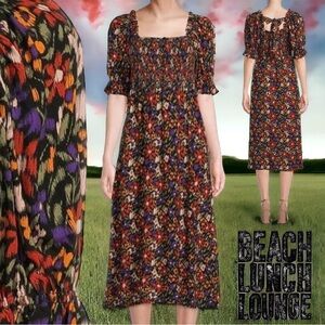 BeachLunchLounge XS Smocked MIDI Floral Dress like new condition