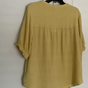 Elevate your wardrobe with this stylish yellow button-up top. Perfect for any occasion, this top offers both comfort and elegance.
