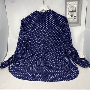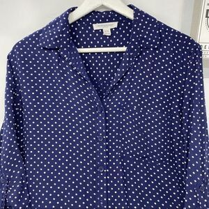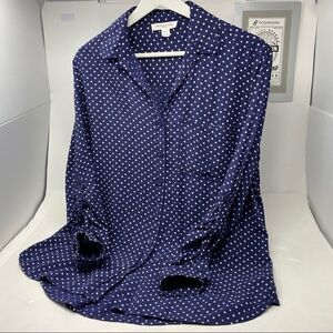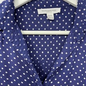 BeachLunchLounge Anthropology Long sleeve button down top. Dark blue with white star & dot pattern. Condition: used in excellent condition. No flaws, low miles. Care: machine wash cold gentle cycle. 100% polyester.
