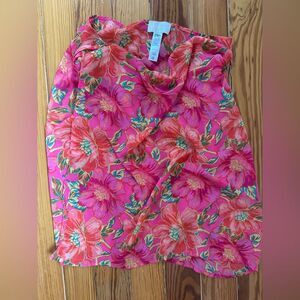 Lightly worn. Bold and colorful floral print. Tie/wrap. One size.