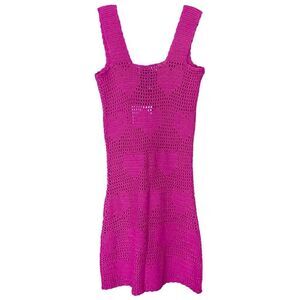 Beach Riot James Fuchsia Pink Heart Crochet Cover Up Mini Dress NWT Size Large