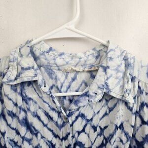 Beaches & BOHO Womens Tunic Top Medium Blue White Tie Dye Coastal Resort Hippie