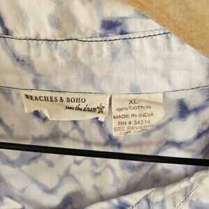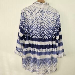 Beaches & Boho Seas the Dream Tie Dye Tunic Top Blouse XL Blue Roll Tab Sleeve